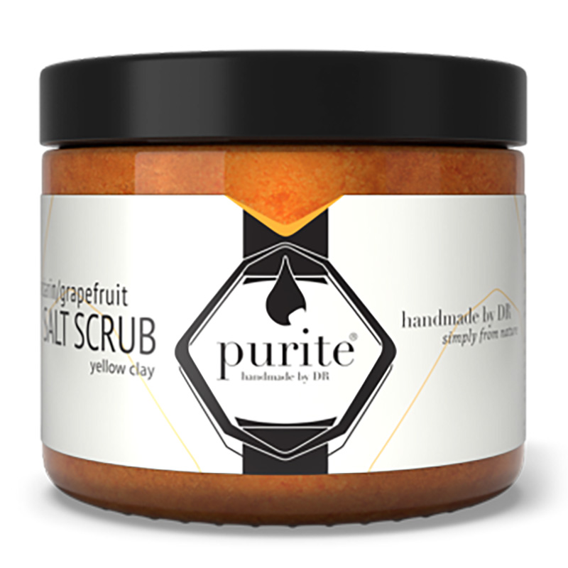 Sól z Morza Martwego, sól morska, masło shea, masło kakaowe, olej z pestek winogron, oliwa z oliwek, olej morelowy, olejek grejpfrutowy, żółta glinka Illite, olejek mandarynkowy, witamina E.