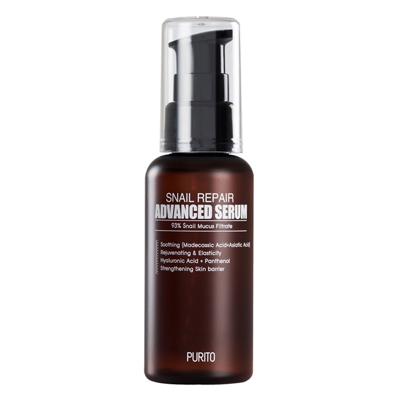 Snail Repair Advanced Serum - Serum regenerujące ze śluzem ślimaka. Wielozadaniowe serum bazujące na 99% naturalnych składników. Aż 93% stanowi wyciąg ze śluzu ślimaka znany ze swojego dobroczynnego działania. Zapewnia dogłębną regenerację i odbudowę naskórka, przyspiesza gojenie ran oraz niweluje podrażnienia. Ponadto działa przeciwtrądzikowo, redukując powstawanie niedoskonałości. Serum zapewnia także cerze ujędrnienie i uelastycznienie naskórka, a także wyrównuje koloryt cery i redukuje cienie pod oczami. To doskonały preparat do walki z problemami skórnymi różnego pochodzenia! Bogactwo składników o terapeutycznych właściwościach dostarczy cerze tego, co najcenniejsze