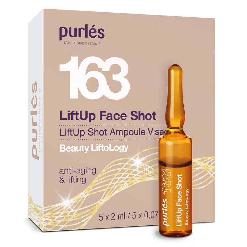 Purles163 Lift Up Face Shot zawiera wysokie stężenie DMAE, ktory wykazuje silne właściwości ujędrniające. Redukuje zmarszczki i wygładza powierzchnię skóry. W ampułce zamknięte są również stabilna postać witaminy C i kwas glikolowy, które stymulują do pracy włókna kolagenowe, a w połączeniu z niacynamidem korzystnie wpływają na ujednolicenie kolorytu skóry.