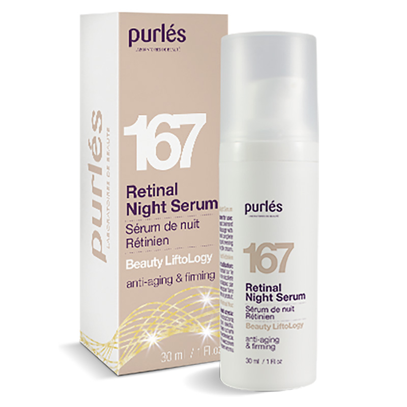 W efekcie stosowania Retinal Night Serum zauważalna jest poprawa gęstości i napięcia skóry oraz redukcja zmarszczek, a także wyrównanie kolorytu i normalizacja pracy gruczołów łojowych.