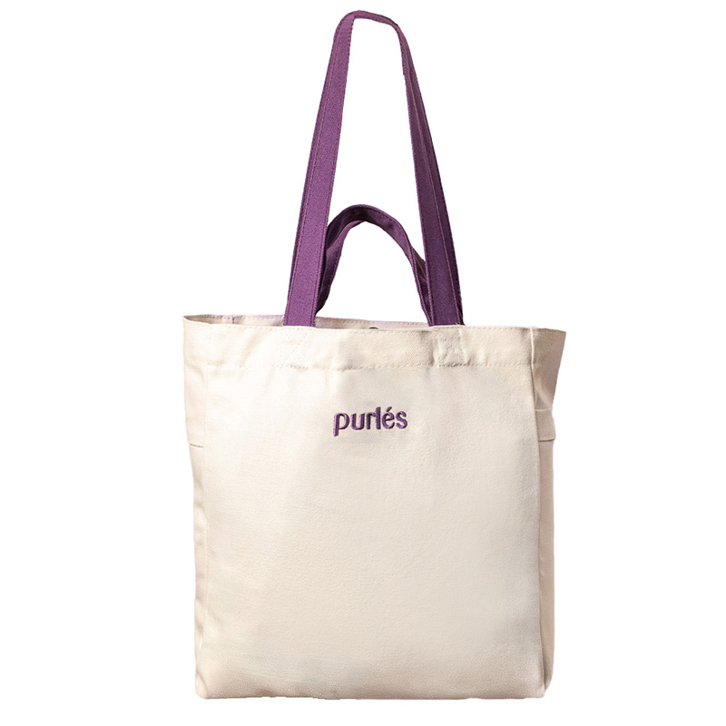 Umieszczone na torbie logo Purles oraz elementy w kolorze fioletu sprawiają, że jej wygląd jest minimalistyczny i stylowy. Estetyka ta idealnie wpisuje się w atmosferę przyjemnego, wiosenno-letniego okresu.
