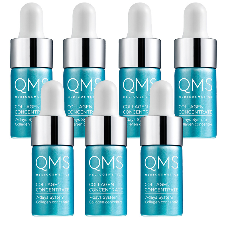 Połowę ampułki koncentratu aplikować na oczyszczoną skórę twarzy rano i wieczorem. Następnie zastosować odpowiednie serum kolagenowe oraz indywidualną pielęgnację QMS w okolicach oczu, twarzy i szyi.