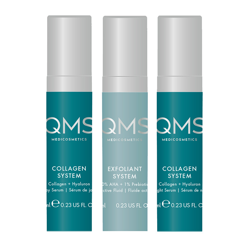 Pierwszym krokiem kuracji jest 10 % kompleks kwasów AHA, który rozpuszcza martwe komórki naskórka, a specjalne enzymy wspomagają naturalny proces złuszczania skóry. Z peelingiem współpracują serum kolagenowe na dzień i na noc, które zapewniają skórze nawilżenie oraz przywracają jej elastyczność i gładką teksturę. Kuracja wykorzystuje również działanie peptydów, które odgrywają bardzo ważną rolę w procesie regeneracji skóry i zapewniają wymierny efekt przeciwzmarszczkowy.