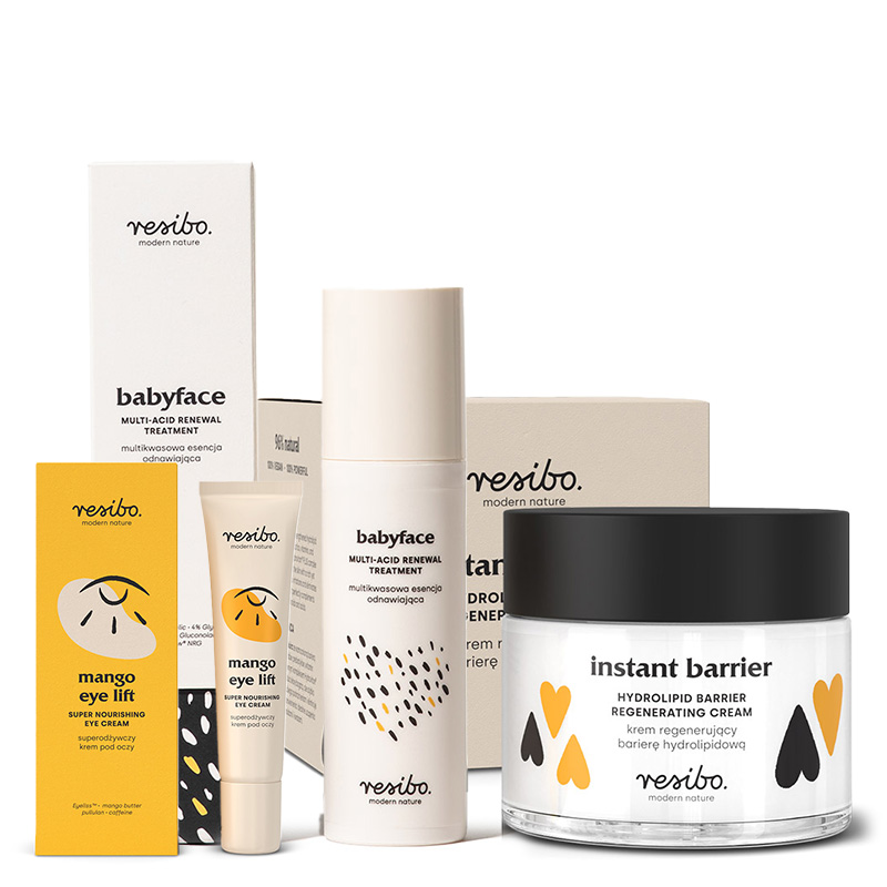 W efekcie regularnego stosowania Resibo Babyface struktura i koloryt cery stają się wyrównane, a dodatkowo zyskuje ona zdrowy blask.