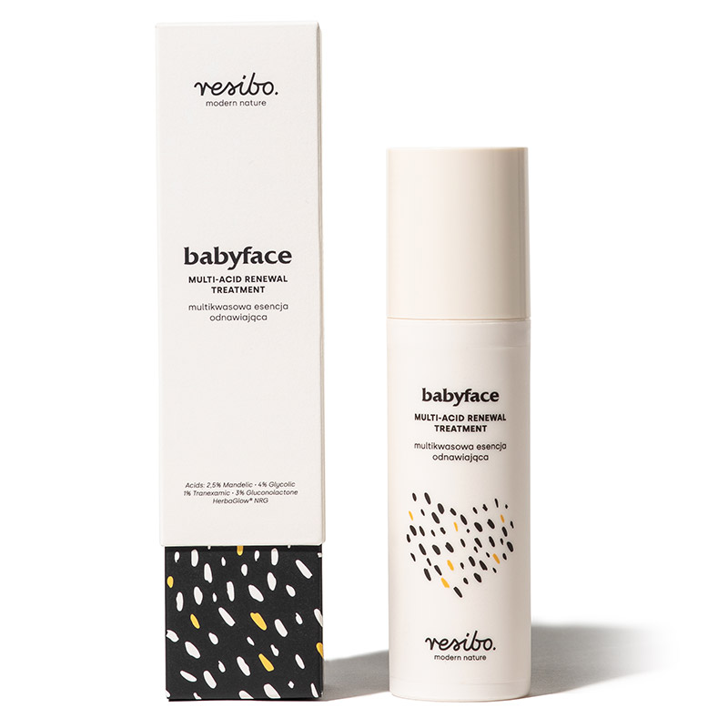 W efekcie regularnego stosowania Resibo Babyface struktura i koloryt cery stają się wyrównane, a dodatkowo zyskuje ona zdrowy blask.