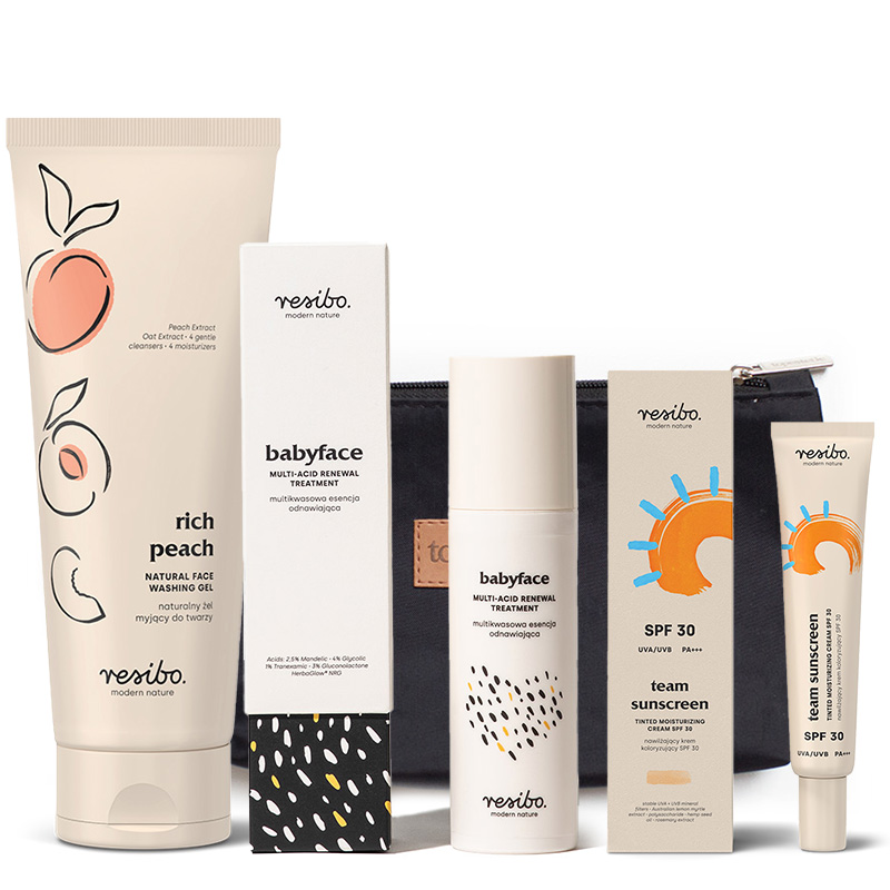 W efekcie regularnego stosowania Resibo Babyface struktura i koloryt cery stają się wyrównane, a dodatkowo zyskuje ona zdrowy blask.