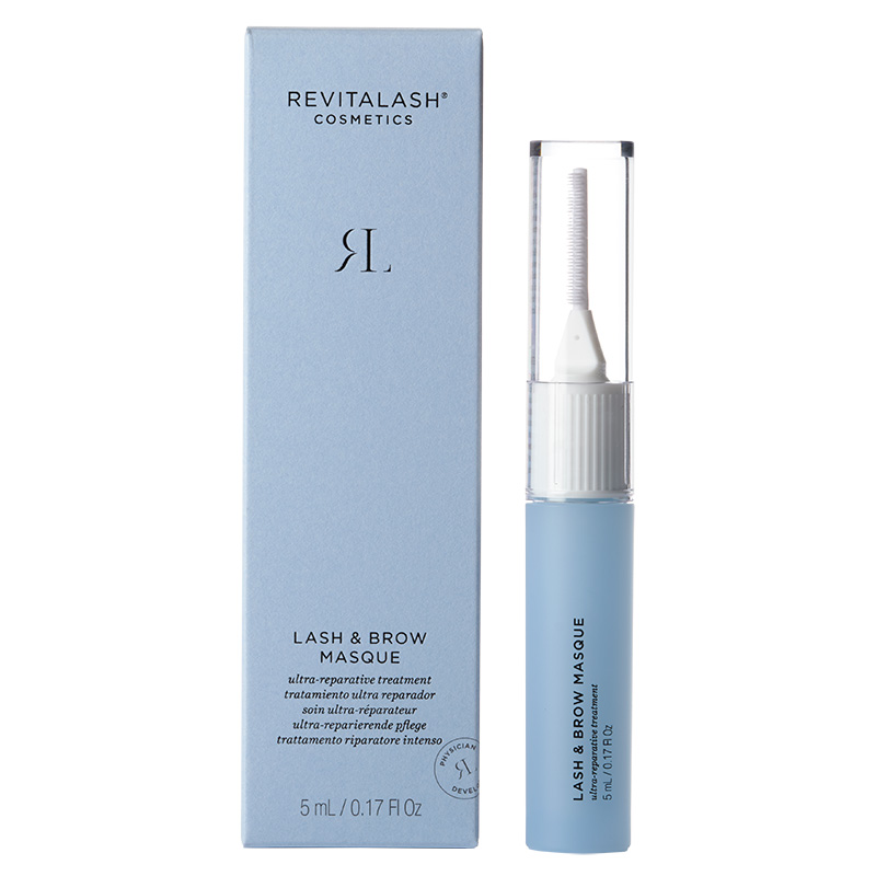 Lash And Brow Masque zawiera Tri-flora Complex (żeń-szeń, glediczja, jasnota biała), który wzmacnia włosy i przywraca im zdrowy blask i wygląd. Dodatkowo trehaloza sprawia, że włosy są mniej podatne na złamania, dzięki zapewnieniu odpowiedniego poziomu nawilżenia. Ponadto biotyna odżywia i regeneruje brwi i rzęsy, a witamina E działa antyoksydacyjnie.