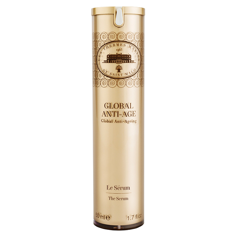 The Serum - Luksusowe serum dedykowane dla cery dojrzałej. Jaja ostrygi energetyzują komórki pobudzając syntezę ATP, dzięki czemu zyskują witalność i pozostają dłużej młode. Składniki aktywne zamknięte są w wielkopłytowych liposomach dzięki czemu uwalniane są przez cały dzień. Wyciąg z alg Corallina zwiera wapń i magnez, które poprawiają gęstość i jędrność skóry . Z kolei morski kolagen połączony z białkiem pszennym w widoczny i zdecydowany sposób zwiększa elastyczność skóry. Zmarszczki mimiczne są zniwelowane dzięki heksapeptydowi, który określany jest alternatywą dla botoksu. Głębokość zmarszczek jest zmniejszona o 27% w zaledwie 30 dni. Kwas hialuronowy nisko- i wysokocząsteczkowy zapewnia głębokie nawilżenie skóry oraz zwiększenie syntezy kolagenu i wygładzenie. Ponadto commipherol będący składnikiem roślinnym eliminuje zmarszczki wypełniając je niczym iniekcja. Za odpowiednie nawilżenie skóry odpowiada także oligogeline morskiego pochodzenia, dodatkowo zmniejsza poszerzone pory skóry. Niezwykle bogata kompozycja serum zapewnia wspaniałe odżywienie skóry, poprawę jej kondycji i wypełnienie zmarszczek, a ekskluzywny zapach o nucie białego lotosu sprawia, że aplikacja jest niezwykle przyjemna.