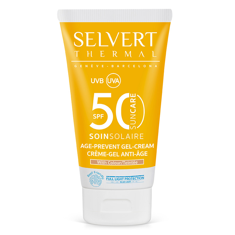 Age Prevent Gel Cream with Colour SPF 50 od Selvert Thermal to doskonały produkt dla osób ze skórą suchą, które szukają skutecznej ochrony przeciwsłonecznej połączonej z lekkim efektem tonującym. Krem-żel delikatnie wyrównuje koloryt skóry, nadając jej zdrowy i naturalny wygląd, jednocześnie chroniąc przed szkodliwym działaniem promieni UV dzięki wysokiemu filtrowi SPF 50.