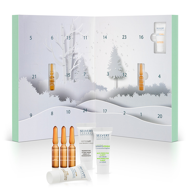 Składowa Selvert Thermal White Perfection Rozjaśnianie i rozświetlenie (ampułki) występuje w zestawie Kalendarz Prezentowy 2021 w zmienionej objętości.