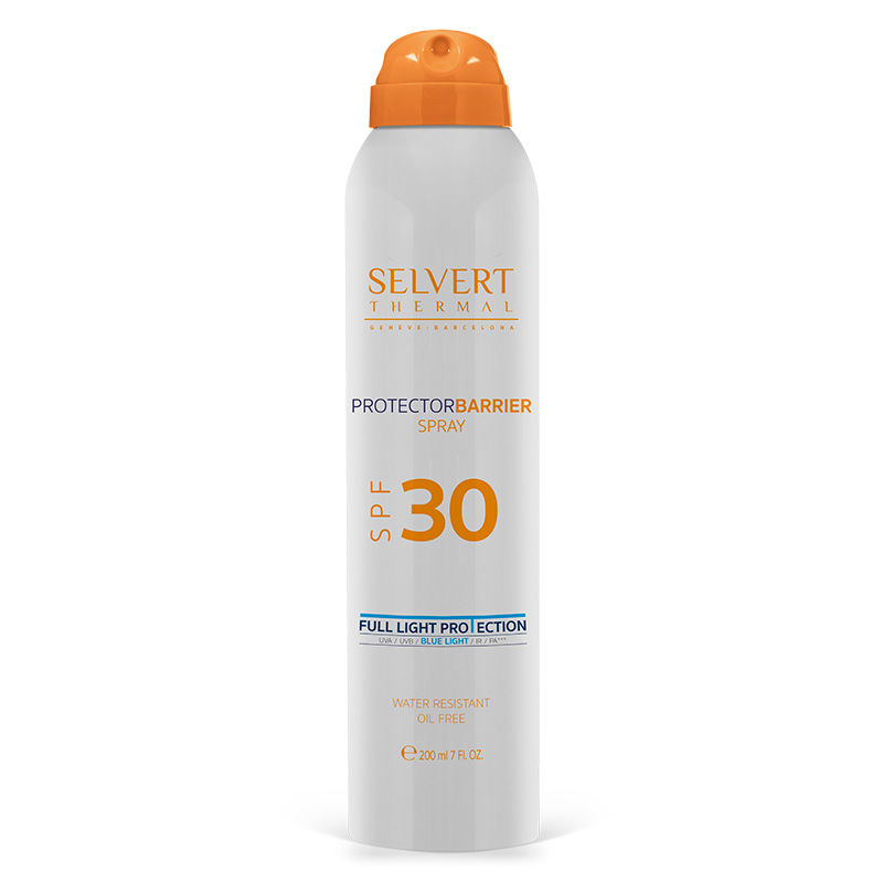 Protector Barrier Spray SPF 30 - Spray z barierą ochronną SPF 30. Odświeżający, beztłuszczowy spray fotoochronny. Zalecany dla każdego typu skóry, szczególnie tłustych, mieszanych, zapewnia wodoodporną ochronę. Dzięki formule w sprayu umożliwia optymalną aplikację na każdą część ciała w dowolnym momencie dnia. Zapewnia skórze doskonałą ochronę przed światłem: UVA/UVB/ światło niebieskie/IR . Dzięki zawartości niacynamidu ogranicza produkcję sebum oraz działa przeciwzapalnie i przeciwtrądzikowo. Witamina E zawarta w sprayu poprawia poziom nawodnienia skóry oraz działa przeciwstarzeniowo.