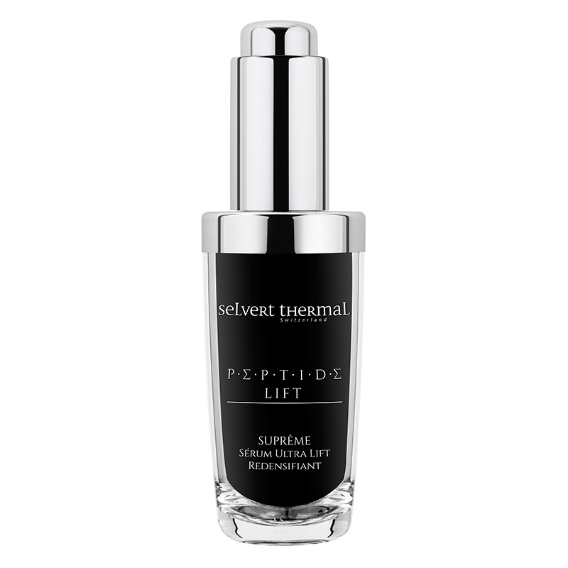 Formuła Selvert Thermal Supreme Ultra Redensifying Lifting Serum opiera się na 4 peptydach (CA-6, Lift-6, NA-8, NA-2), które zwiększają gęstość skóry, elastyczność oraz poprawiają owal twarzy. Ponadto zapobiega i niweluje widoczność zmarszczek mimicznych.