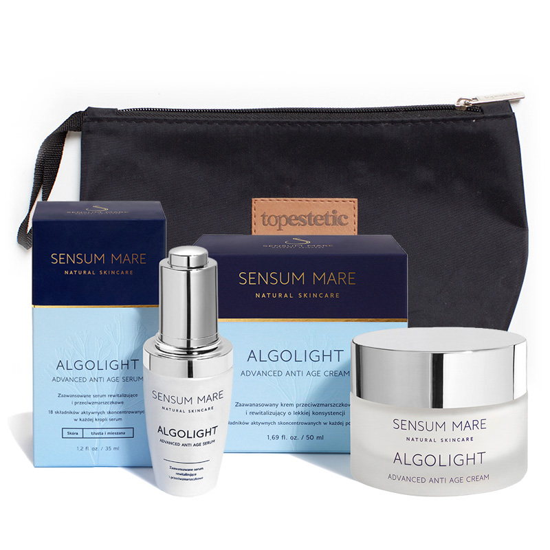 AlgoLight Set - zestaw stworzony z myślą o cerze mieszanej i tłustej z oznakami starzenia. Zarówno serum, jak i krem z tego kompletu mają lekką konsystencję, a jednocześnie formułę bogatą w składniki aktywne. Kosmetyki te zapewniają odpowiednie nawilżenie skóry, a także jej wygładzenie i ujędrnienie. W zestawie znajdziemy także wygodną kosmetyczkę z logo Topestetic.