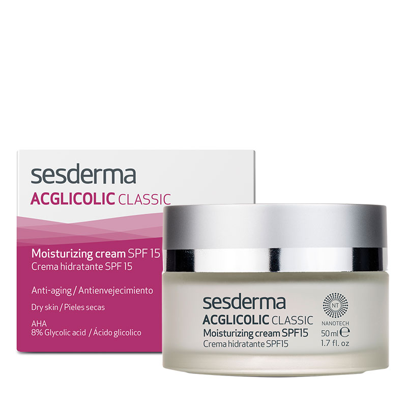 W formule kremu Sesderma Acglicolic Classic SPF 15 zawarto 8% kwas glikolowy w formie wolnej i liposomalnej, a także witaminy C i E, komórki macierzyste pozyskane z mikołajka nadmorskiego, kwas hialuronowy, ceramidy, proteiny mleka oraz ekstrakt z aloesu.