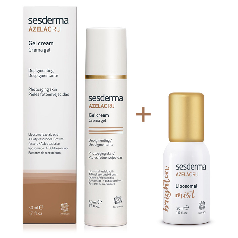 Azelac Ru Liposomal Mist Mgiełka depigmentującaMgiełka przeznaczona dla osób borykających się z plamami pigmentacyjnymi i nierównomiernym kolorytem. Dzięki bogatej kompozycji składników aktywnych, takich jak: wyciąg ze stokrotki, witamina C, kwas azelainowy, morwa biała, witamina B3, witamina A oraz kwas traneksamowy zadaniem mgiełki jest nie tylko rozjaśnienie przebarwień, ale również zapobieganie ich nawracaniu.