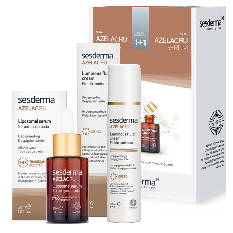 Bardzo fajny zestaw, niweluje przebarwienia i chroni przed słońcem SPF 50. Na wieczór serum, a na dzień dodatkowo z kremem