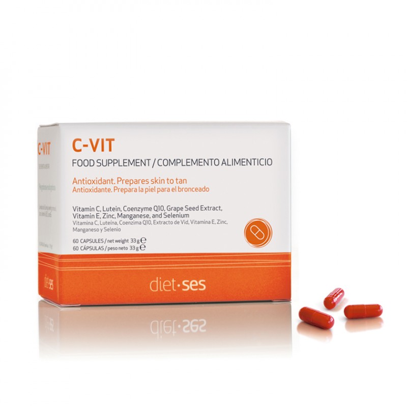 C-VIT Kapsułki antyoksydacyjne - suplement diety na bazie witaminy C, luteiny, koenzymu Q10, wyciągu z winorośli, witaminy E, cynku, manganu i selenu.