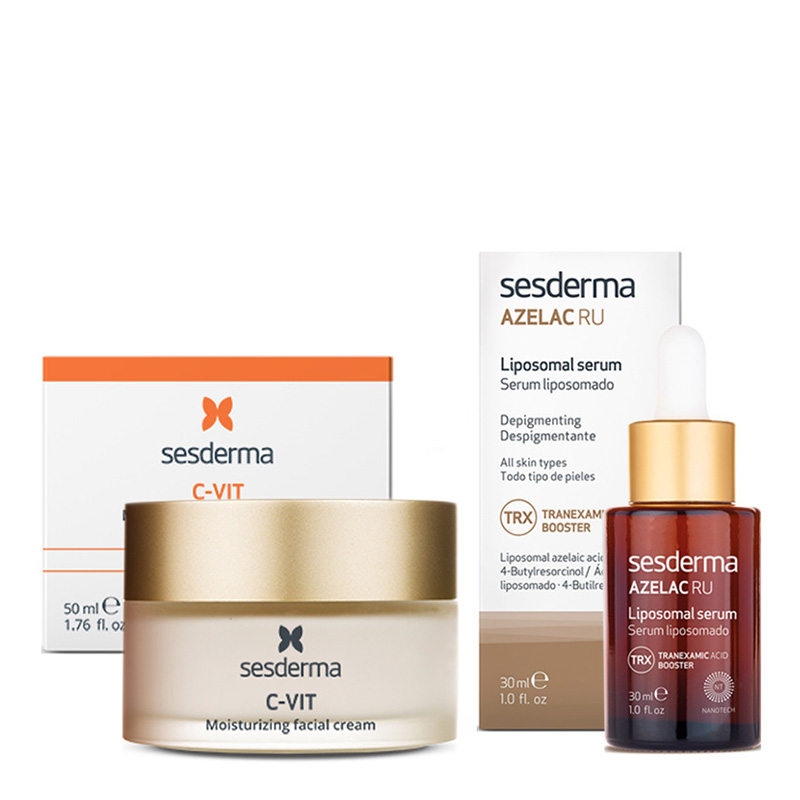 Serum Azelac RU jedno z najlepszych kosmetyków w walce z przebarwieniami, nie powoduje podrażnień. Jest delikatny ale skuteczny. Krem CVit pięknie rozświetla skórę i do tego przepięknie pachnie. Doskonale się wchłania. Zestaw w super atrakcyjnej cenie.