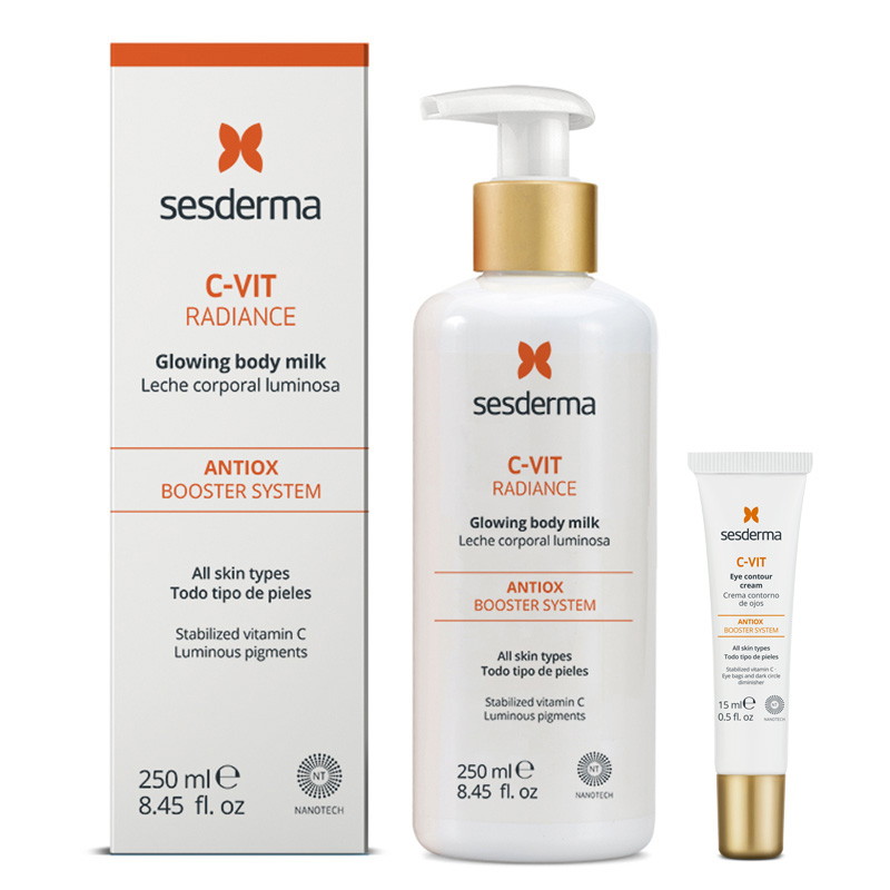 Dzięki lekkiej formule C-VIT Radiance Glowing Body Milk szybko się wchłania, a widoczne, rozświetlające drobinki zapewniają skórze efekt promiennego blasku.