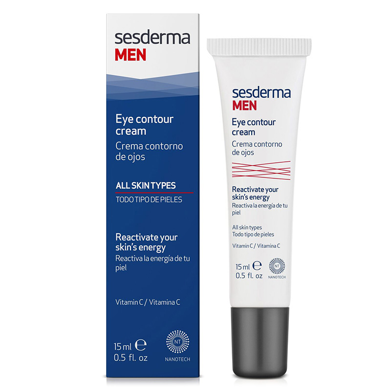Sesderma Men - Żel pod oczy. Przeciwzmarszczkowy krem do pielęgnacji męskiej skóry wokół oczu. Zawiera krzem organiczny który nawilża i zwiększa produkcję komórek elastynowych i kolagenowych. Ekstrakt z nostrzyka zmniejsza opuchliznę, obrzęki oraz redukuje cienie od oczami. Krem posiada kwas hialuronowy, naturalny wypełniacz wzmacniający strukturę skóry. Dzięki wyciągowi z Boswelia Serrata preparat działa przeciwzapalnie, koji i zmniejsza obrzęki pod oczami. Stosowany codziennie widocznie rewitalizuje męską skórę twarzy.