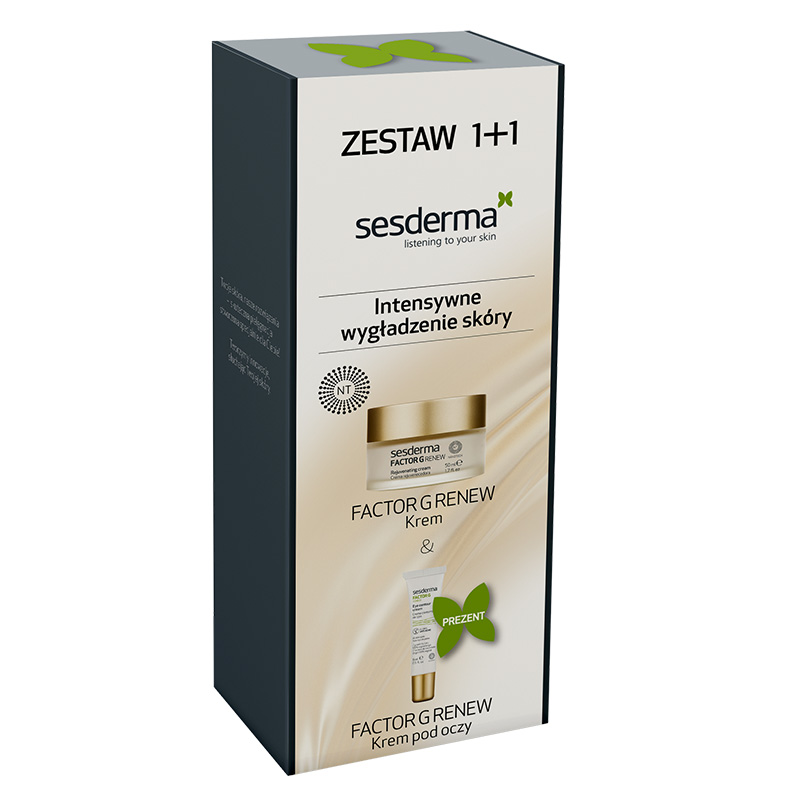 Factor G Eye Contour Cream Przeciwstarzeniowy krem pod oczyKosmetyk przeznaczony do pielęgnacji okolicy oczu z oznakami starzenia. Zawiera czynniki wzrostu i retinal, których synergiczne działanie stymuluje syntezę nowych włókien podporowych, prowadząc do przebudowy struktury skóry.