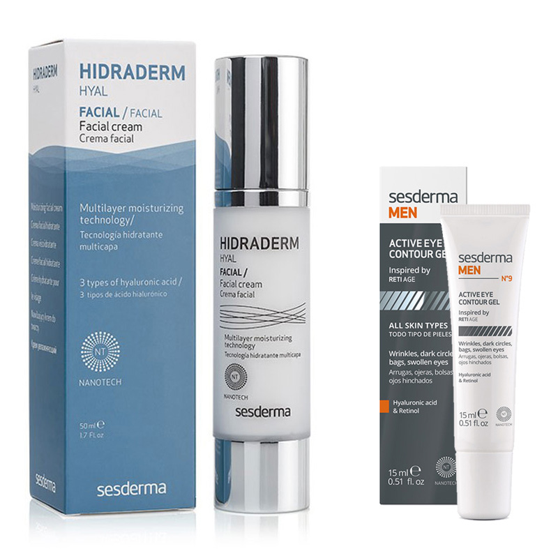 Hidraderm Hyal + MEN N9 Active Eye Contour Gel - ZESTAW Krem do twarzy + Żel pod oczy dla mężczyzn. Zestaw przygotowany z myślą o mężczyznach, którzy chcą zadbać o skórę twarzy i wrażliwej okolicy oczu. Żel pod oczy będzie skutecznie wygładza ten obszar oraz niwelował cienie i opuchnięcia, a krem doskonale się sprawdzi jako codzienna dawka nawilżenia i ukojenia skóry. Lekkie konsystencje obu preparatów z pewnością spodobają się mężczyznom szukającym aktywnej pielęgnacji.