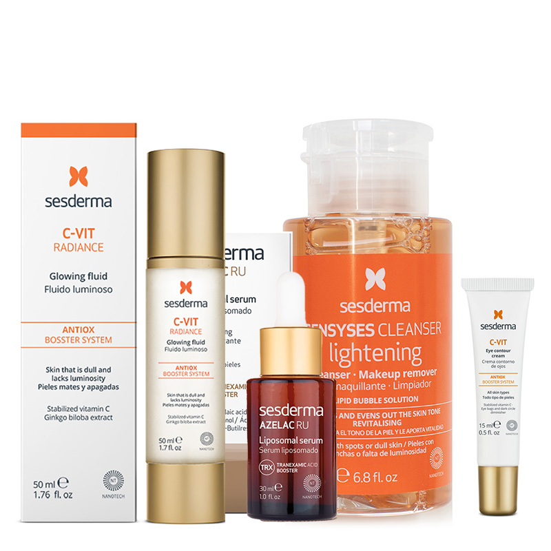 C-VIT Radiance Krem rozświetlającyWitamina C (3-0 etylowy kwas askorbinowy), wyciąg ze słodkiej pomarańczy, wyciąg z miłorzębu dwuklapowego (ginkgo biloba), pterostylben, kwercetyna, palmitoyl tripeptide-5.