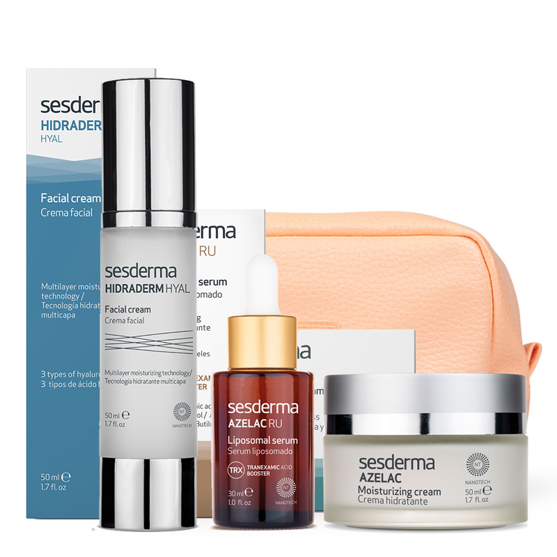 Produkty niezwykle wydajne. Krem hidraderm ma piękny zapach, lekką konsystencję. Idealnie się wchłania i pięknie pachnie. Serum oraz krem azelac idealne do wieczornej pielęgnacji. Serum ma lekką konsystencję i nie pozostawia uczucia ściągnięcia. Mięsista struktura kremu daje uczucie nawilżenia. Kosmetyczka choć wydaje się mała mieści sporo rzeczy. Plus za jasne wnętrze, ułatwia znalezienie odpowiedniego kosmetyku :)