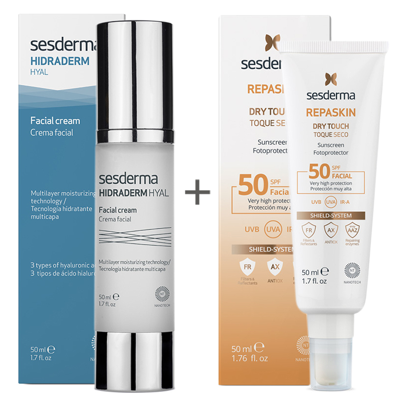 Zestaw zakupiony po raz kolejny. Hidraderm Hyal niesamowity jeśli chodzi o nawilżenie skóry, intensywnie odżywia w przypadku cery odwodnionej. Repaskin Fotoprotector SPF50 to krem, który zawsze muszę mieć. Skutecznie chroni skórę przed promieniowaniem UV. Szczerze polecam ten zestaw, warto spróbować inne kosmetyki sesdermy.
