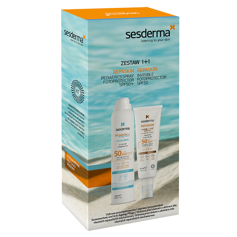 Repaskin Lotion Body Spray SPF 50+ Baby Spray przeciwsłoneczny dla dzieciFiltry chemiczne, kompleks antyoksydacyjny, aloes, ceramidy.