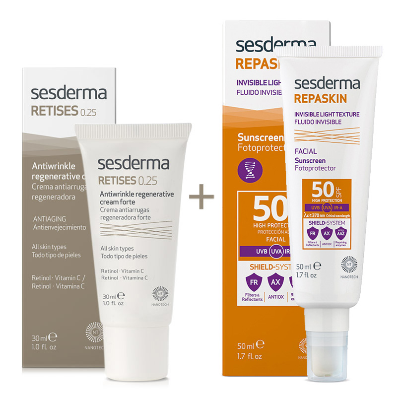 Retises 0,25% Regenerujący krem przeciwzmarszczkowyPropozycja dla skóry dojrzałej oraz dla skóry po zabiegach z zastosowaniem retinolu jako podtrzymująca efekty kuracja przeciwzmarszczkowa. Preparat bazuje na połączeniu dwóch form witaminy A, które silnie odżywiają, wygładzają i doskonale pielęgnują skórę.