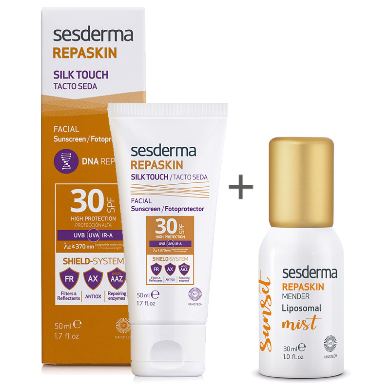Repaskin Silk Touch SPF 30 - Wysoka ochrona przeciwsłoneczna SPF 30. Innowacyjny kosmetyk o niezwykle lekkiej konsystencji, idealny dla każdego typu cery. Dzięki formie delikatnego żelu, który porównać można do lekkiej, silikonowej bazy pod makijaż szybko wchłania się w skórę pozostawiając ją jedwabiście gładką o matowym wykończeniu. Filtry przeciwsłoneczne fizyczne i chemiczne, które są niezwykle stabilne zapewniają pełną ochronę przeciwsłoneczną zarówno dla promieniowania UVA jak i UVB. Wysoka ochrona SPF 30 zapewnia odpowiednie zabezpieczenie przed poparzeniem słonecznym bez białego filmu na twarzy. Dzięki wykorzystaniu nowoczesnej technologii składniki aktywne wnikają w głębsze warstwy skóry wykazując pozytywne działanie. Zawarte w kremie enzymy naprawcze, aktywowane pod wpływem promieni słonecznych, fotoliza i endonukleaza chronią i reperują DNA chroniąc skórę przed fotostarzeniem. Rezultatem jest jedwabiście gładka i zdrowa skóra.