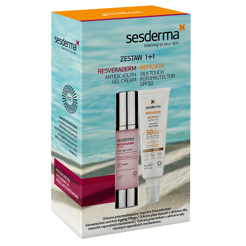 Resveraderm Youth Gel Cream Krem-żel przeciwstarzeniowyPreparat w postaci lekkiego kremo-żelu, który doskonale sprawdzi się w przypadku skóry mieszanej. Silne antyoksydanty: resweratrol, idebenon czy kwercetyna niwelują niekorzystny wpływ czynników zewnętrznych, takich jak promieniowanie UV, stres i zmęczenie. Dzięki temu opóźniają znacząco proces fotostarzenia.