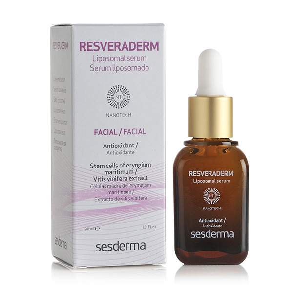 Resveraderm Antiox Serum przeciwstarzeniowe - Resweratrol, to silny polifenol występujący w winogronach. Posiada działanie silnie odmładzające zapobiegając przedwczesnym objawom starzenia się. Chroni DNA komórkowe i ma wpływ na ważne dla zdrowia jak i skóry procesy biologiczne. Jest naturalną substancją o wyjątkowo wysokiej zdolności antyoksydacyjnej czyli przeciwdziałania wolnym rodnikom. Jak wynika z najnowszych badań resweratrol bezpośrednio i w skuteczny sposób oddziałuje na gen długowieczności. Resweratrol w swym szerokim zastosowaniu inicjuje również serię procesów metabolicznych, pobudzając geny z rodziny SIRT i białek wydłużając życie komórek. Nowa generacja antyutleniaczy wykorzystując nanotechnologię która polega na przenoszeniu składników aktywnych zamkniętych w nanosomach do głębszych warstw skóry równocześnie wzmacniając efekt. Redukuje zmarszczki, rozświetla skórę, przywraca jędrność, chroni przed czynnikami zewnętrznymi jak promieniowanie UV, stres, zmęczenie. To przez połączenie tak silnych antyoksydantów Resveraderm tworzy wysoce skuteczna profilaktykę starzenia się skóry i przeciwwolnorodnikowa.