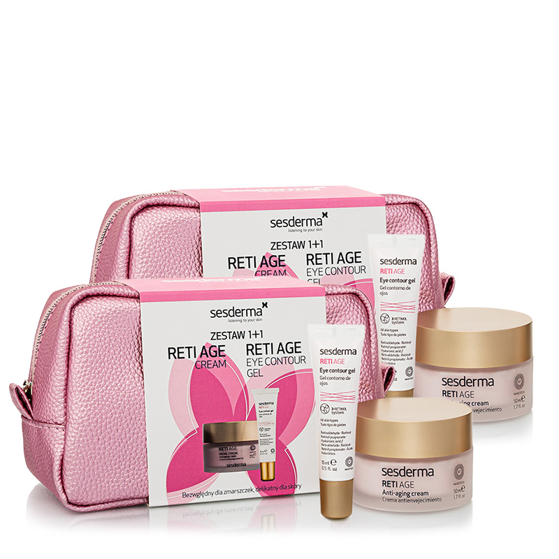 Zestaw promocyjny Reti Age to kompletne rozwiązanie dla każdego typu cery wymagającej działania przeciwstarzeniowego. Zawarte w nim krem do twarzy i krem pod oczy opierają swoje działanie na trzech formach witaminy A zamkniętych w nanosomach. Dzięki temu kosmetyki cechują się dużą efektywnością, przy jednocześnie niskim potencjale drażniącym. Stanowią doskonały wybór w przypadku skór wrażliwych czy podczas rozpoczynania terapii retinolem.