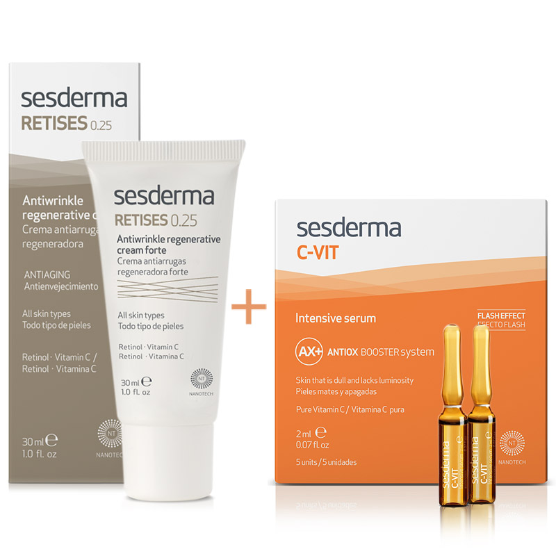 Zestaw stosuję od dwóch miesięcy i obserwuję wyraźną poprawę kondycji skóry, zauważalną również dla wielu moich koleżanek :) Mam wrażliwą skórę i wcześniej używane kremy z retinolem powodowały u mnie podrażnienia, ale Retises 0,25 stosowany na noc co drugi dzień jest idealny. Ampułki C-Vit stosowane na dzień pięknie rozświetlają i napinają skórę. Bardzo polecam!