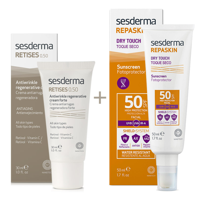 Retises 0,5% Regenerujący krem przeciwzmarszczkowyPropozycja dla skóry dojrzałej oraz dla skóry po zabiegach z zastosowaniem retinolu jako podtrzymująca efekty kuracja przeciwzmarszczkowa. Preparat posiada wysoką zawartość retinolu (0,5%), który silnie odżywia, wygładza i doskonale pielęgnuje skórę. Stężenie retinolu jest na tyle duże, że przed zastosowaniem należy przyzwyczaić skórę do retinolu 3-miesięczną kuracją wstępną kremem Retises 0,25%.