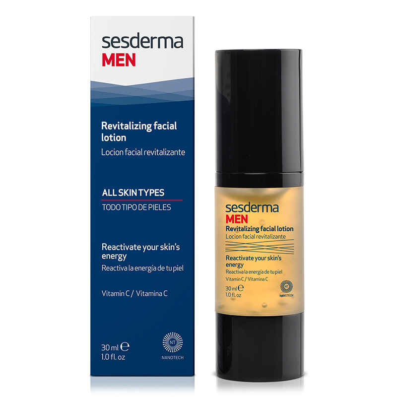 Sesderma Men - Rewitalizująca emulsja do twarzy. Innowacyjna formuła na bazie witaminy C stworzona z myślą o cerze męskiej. Stabilizowany glukozyd askorbylu posiada dłuższe działanie niż tradycyjna witamina C. Preparat stymuluje syntezę kolagenu skutecznie spłycając zmarszczki. Zmniejsza działanie wolnych rodników korzystnie wpływając na młodszy stan skóry. Zastosowany wyciąg z pomarańczy złuszcza i widocznie zmniejsza grubość warstwy rogowej. Emulsja ułatwia wnikanie składników aktywnych w głąb skóry. Silnie nawilża oraz dodaje skórze energii.