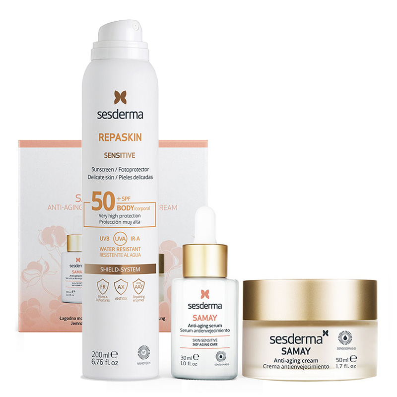 Zestaw kosmetyków Samay przeznaczony jest szczególnie dla skóry wrażliwej objętej procesem starzenia. W składzie preparatów zastosowano bakuchiol wykazujący działanie przeciwstarzeniowe i charakteryzujący się wysokim stopniom tolerancji przez skórę wrażliwą. Preparaty posiadają także właściwości nawilżające, łagodzące i wspomagające regenerację. Przeznaczone są do codziennej pielęgnacji skóry.