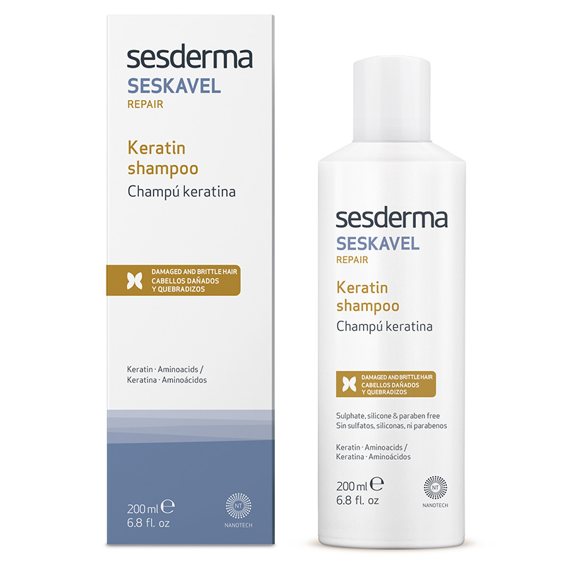 Szampon, który idealnie sprawdzi się w przypadku włosów suchych, zniszczonych i potrzebujących regeneracji. Dzięki zawartości keratyny, która jest naturalnym budulcem włosa pozwala odbudować zniszczone włosy i zapobiega ich puszeniu. Ekstrakt z owsa wygładza włosy oraz zapobiega ich przesuszeniu. Z kolei rumianek koi podrażnioną skórę głowy. W efekcie włosy stają się nawilżone, gładkie i błyszczące, a skóra głowy jest dokładnie oczyszczona.