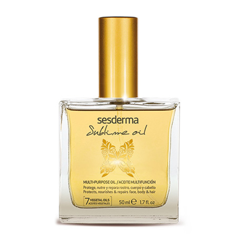 Sublime Oil - Mieszanka olejków idealna do pielęgnacji skóry twarzy, ciała oraz włosów. Dzięki odpowiedniej kompozycji składników aktywnych posiada właściwości naprawcze, ochronne oraz odżywcze. Olej z pestek moreli zdecydowanie poprawia kondycję skóry wrażliwej, suchej, popękanej i szorstkiej, ale także mieszanej i dojrzałej, silnie nawilża, ogranicza również powstawanie zmarszczek. Olej ze słodkich migdałów jest bogaty w witaminy A i E, dzięki czemu rewelacyjnie łagodzi i pielęgnuje skórę, poprawia jej ukrwienie i koloryt. Zapobiega powstawaniu rozstępów i chroni skórę przed czynnikami atmosferycznymi. Z kolei Olej jojoba działa odżywczo i natłuszczająco, ale jednocześnie reguluje wydzielanie sebum. Łagodzi stany zapalne, poparzenia słoneczne, objawy łupieżu i trądziku. Natomiast Olej sezamowy widocznie uelastycznia skórę, zapobiega jej przesuszeniu korzystnie wpływając szczególnie na skórę suchą i źle ukrwioną. Olej słonecznikowy stanowi bogactwo nienasyconych kwasów tłuszczowych, wosków, lecytyny, karotenów i witaminy E dzięki czemu posiada właściwości antyoksydacyjne, jednocześnie wygładza i zmiękcza skórę. Olej arganowy ma właściwości ochronne, antyseptyczne i wygładzające, jest to rewelacyjne źródło kwasów Omega 3, 6, 9. Ponadto Ekstrakt z ziela świętojańskiego wykazuje działanie przeciwzapalne, ściągające i tonizujące. Rezultatem jest widoczna poprawa kondycji skóry i włosów, ich nawilżenie oraz odżywienie.