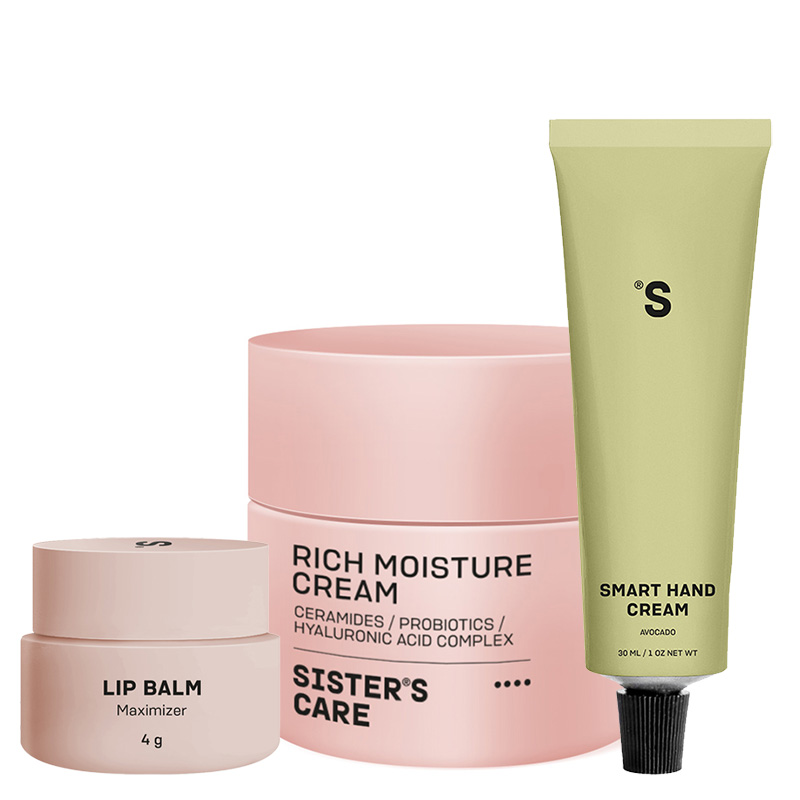 Kwas hialuronowy, masło shea, probiotyki, olej makadamia, olej słonecznikowy, ceramidy, witamina E, arginina, lecytyna, cholesterol.