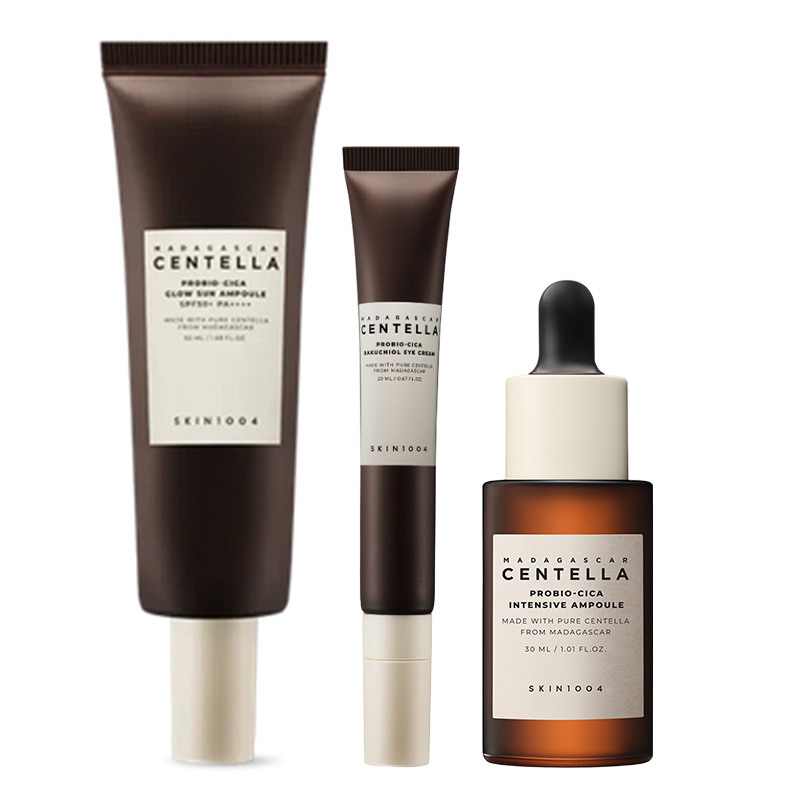 Madagascar Centella Probio-Cica Glow Sun Ampoule SPF50+ PA++++ Głęboko nawilżający krem z filtrem o lekkiej konsystencjiKompleks Probio-Cica, ekstrakt z wąkroty azjatyckiej, TECA (azjatykozyd, kwas azjatykowy, kwas madekasowy), ceramid NP, pantenol, betaina.