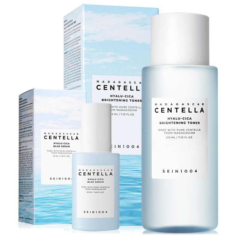 Madagascar Centella Hyalu-Cica Blue Serum Nawilżające serum z kwasem hialuronowym i ekstraktem z wąkroty azjatyckiejKwas hialuronowy, wyciąg z wąkroty azjatyckiej, wyciąg z liści bluszczu pospolitego.