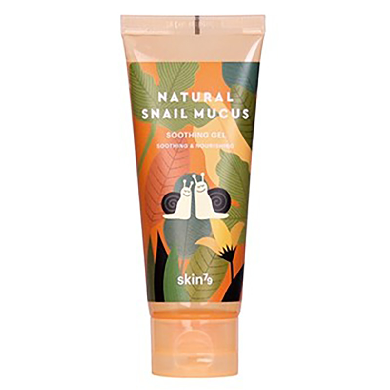 Natural Snail Mucus Soothing Gel - Kojący żel ze śluzem ślimaka. Żel Skin79 to wyjątkowy produkt bazujący na zawartości kolagenu oraz filtratu ze z śluzu ślimaka. Kompozycja składników o silnych właściwościach regenerujących pozwala przywrócić skórze równowagę oraz łagodzi podrażnienia. Żelowa formuła sprawia że produkt jest bardzo lekki, szybko się wchłania i nie pozostawia tłustej warstwy na skórze. Wyciąg ze śluzu ślimaka charakteryzuje się właściwościami przeciwzmarszczkowymi- stymuluje proces odnowy skóry oraz gwarantuje jej gładkość. Aloes to składnik który silnie nawilża skórę, przyspiesza gojenie się ran i łagodzi podrażnienia. Żel może być stosowany na całe ciało oraz twarz w celu nawilżenia i zregenerowania skory.