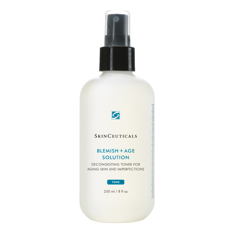 Blemish + Age Solution - Tonik usuwający zanieczyszczenia i martwe komórki. Produkt do pielęgnacji skóry dojrzałej, z problemami pojawiających się wyprysków. W składzie preparatu znajduje się połączenie trzech składników złuszczających: kwas kaprilowo-salicylowy, kwas salicylowy, kwas glikolowy. Złuszczanie skutecznie odblokowuje pory, usuwa głębokie zanieczyszczenia oraz martwe komórki naskórka. Widocznie wyrównuje się również koloryt oraz tekstura cery. Tonik skutecznie oczyszcza skórę z resztek makijażu, zanieczyszczeń zewnętrznych oraz łoju, które są przyczyną powstawania wyprysków.