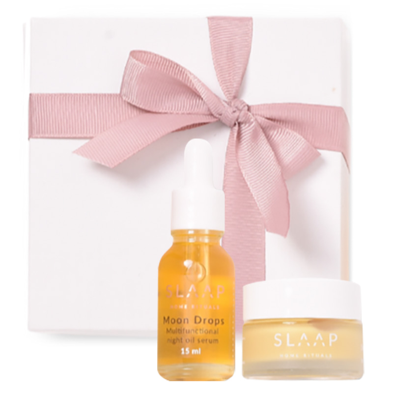 Składowa Slaap Moon Drops Wielozadaniowe serum olejowe na noc występuje w zestawie Duet Miniatur w zmienionej objętości.