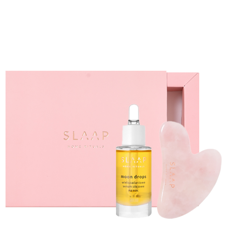 Składowa Slaap Moon Drops Wielozadaniowe serum olejowe na noc występuje w zestawie Moon Drops + Płytka Gua Sha w zmienionej objętości.