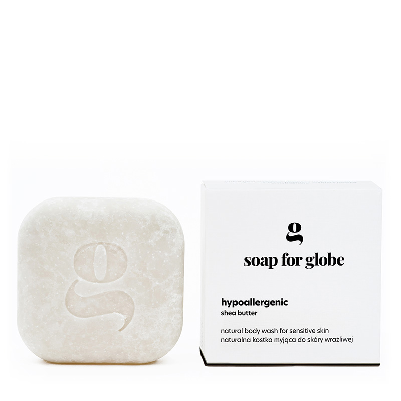 Kosmetyk jest biodegradowalny i posiada delikatny zapach masła shea. W efekcie stosowania kostka myjąca Soap For Globe Hypoallergenic zapewnia delikatne oczyszczenie naskórka, pozostawiając ciało miękkie i nawilżone po umyciu.