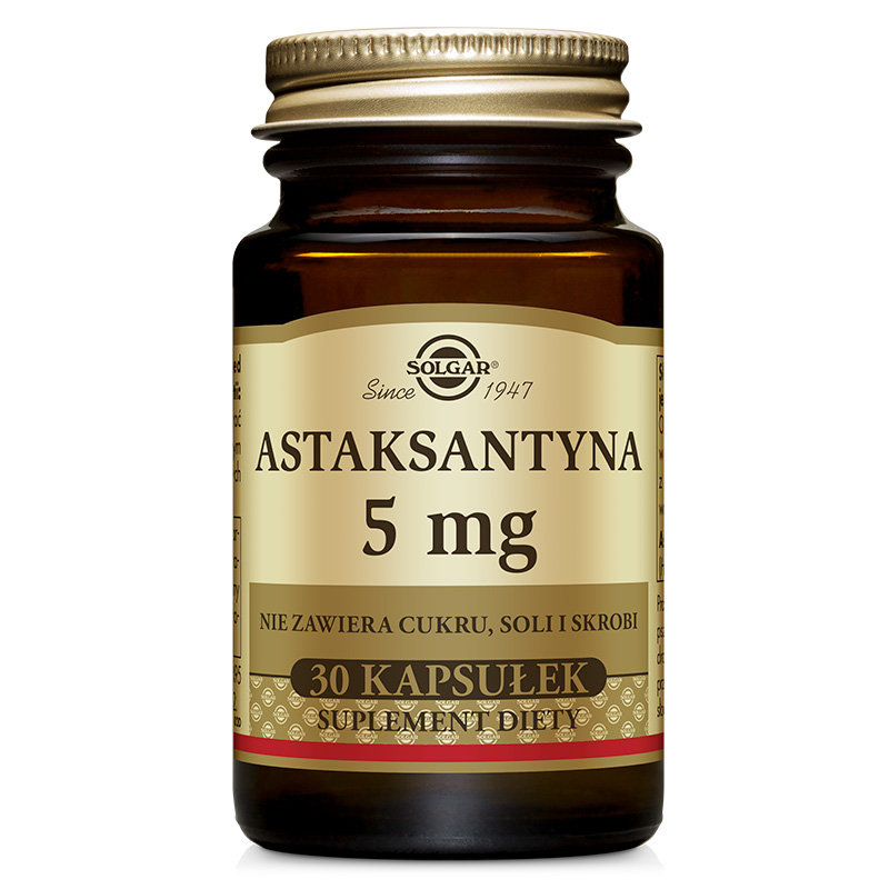 Suplement diety przeznaczony dla dorosłych. Zawiera astaksantynę, naturalny karotenoid pochodzący z alg Haematococcus pluvialis, rozpuszczoną w oleju słonecznikowym.